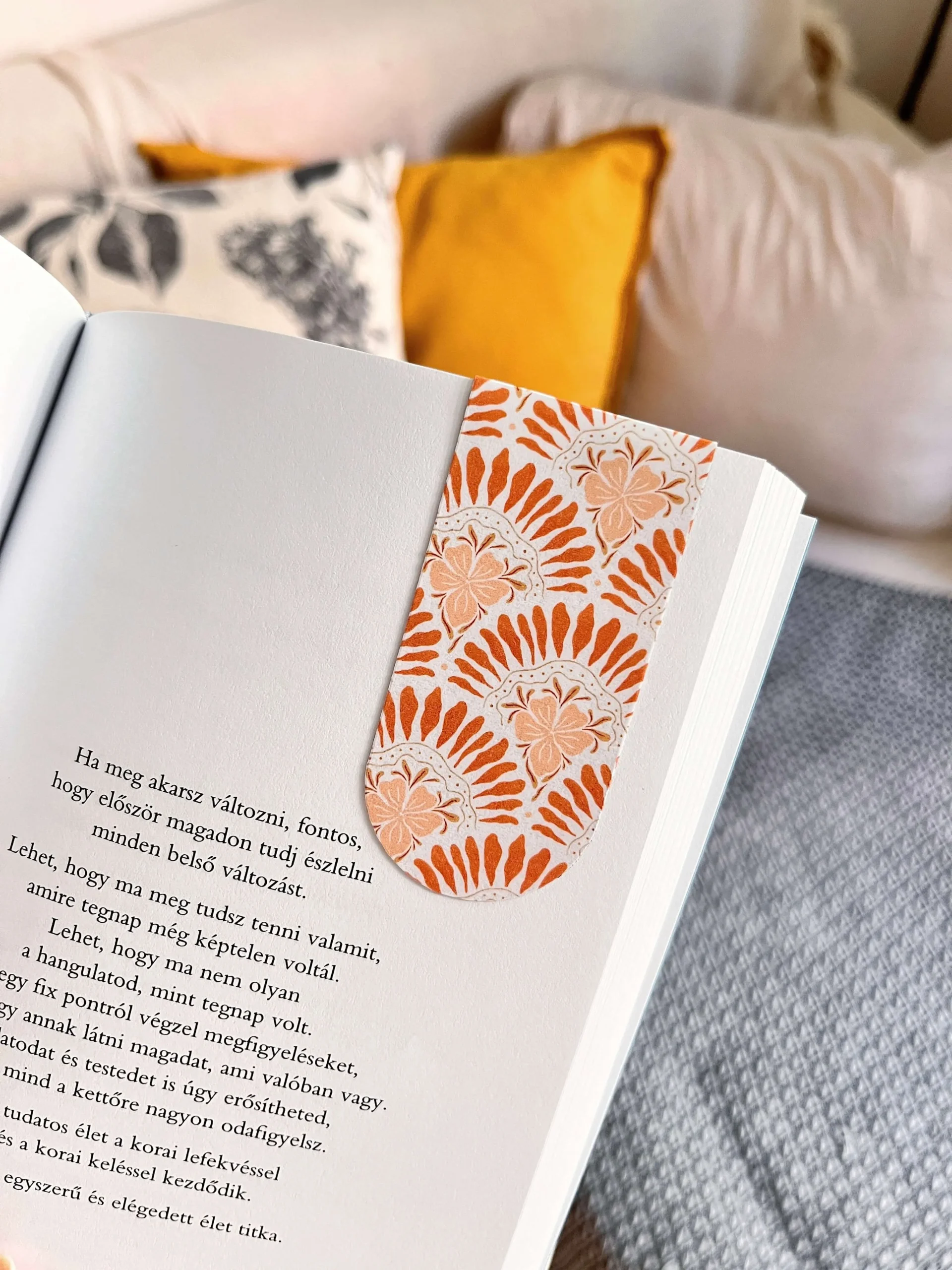 Ez a boho stílusú, rózsaszín és bordó virágmintás mágneses könyvjelző nemcsak gyönyörű, hanem rendkívül praktikus is. A könyvjelzőket puha mágneslapból készítem, így a könyvjelző nem csúszik ki (és nem is tépi a lapokat), akár táskában hordod a könyved, akár otthon olvasol. Könnyű, tartós, és tökéletes ajándék minden könyvmoly számára. Tedd egyedivé az olvasási élményed ezzel a stílusos kiegészítővel, ami bármilyen méretű könyvben használható.