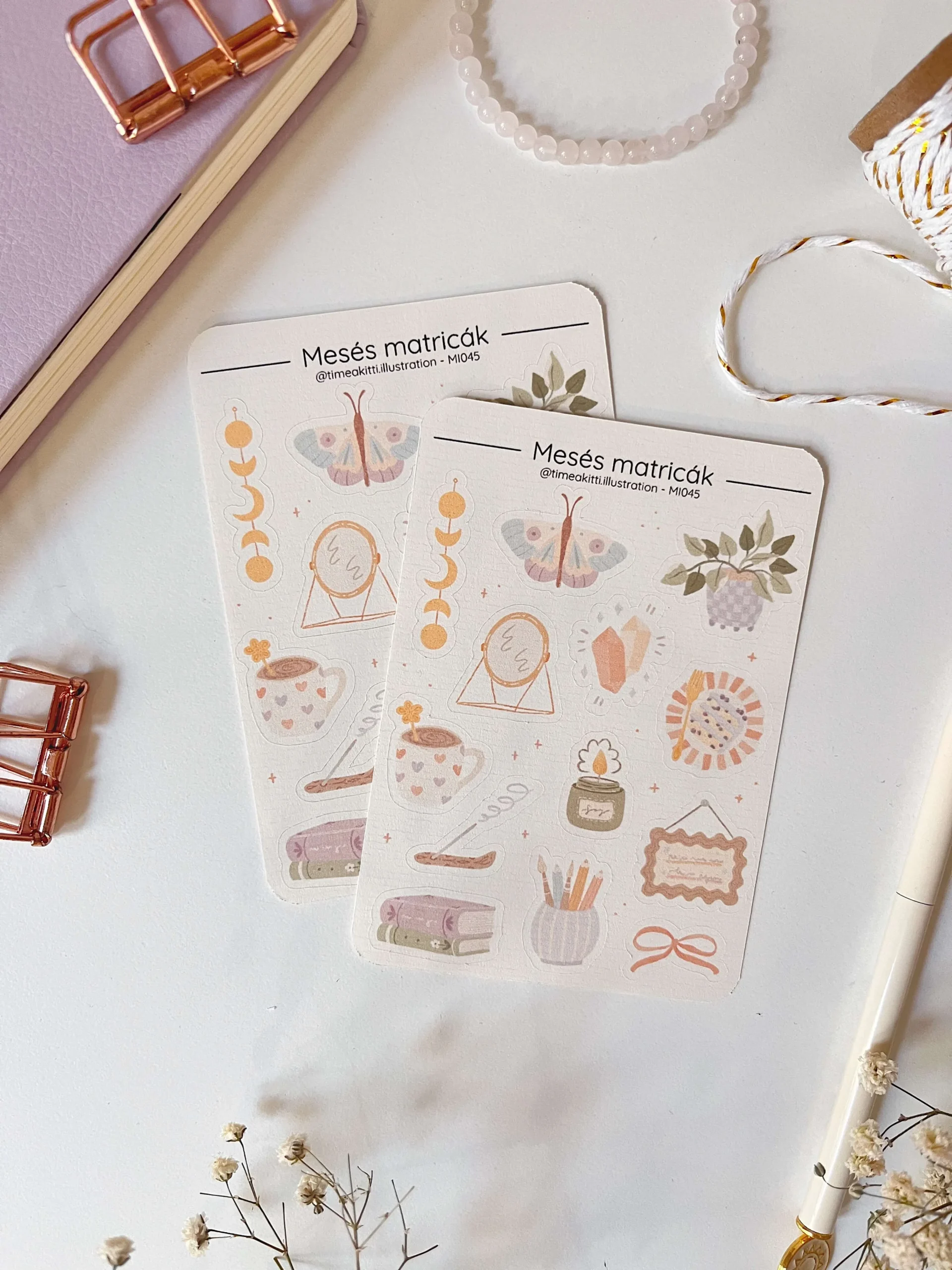 A matricaíveimet bordázott felületű, prémium hatású papírra nyomtatom és vágom a kis itthoni műhelyemben. Ezek a matricák kiválóan illenek bullet journalba, scrapbookba vagy akár képeslapok, ajándékcsomagok díszítéséhez is.