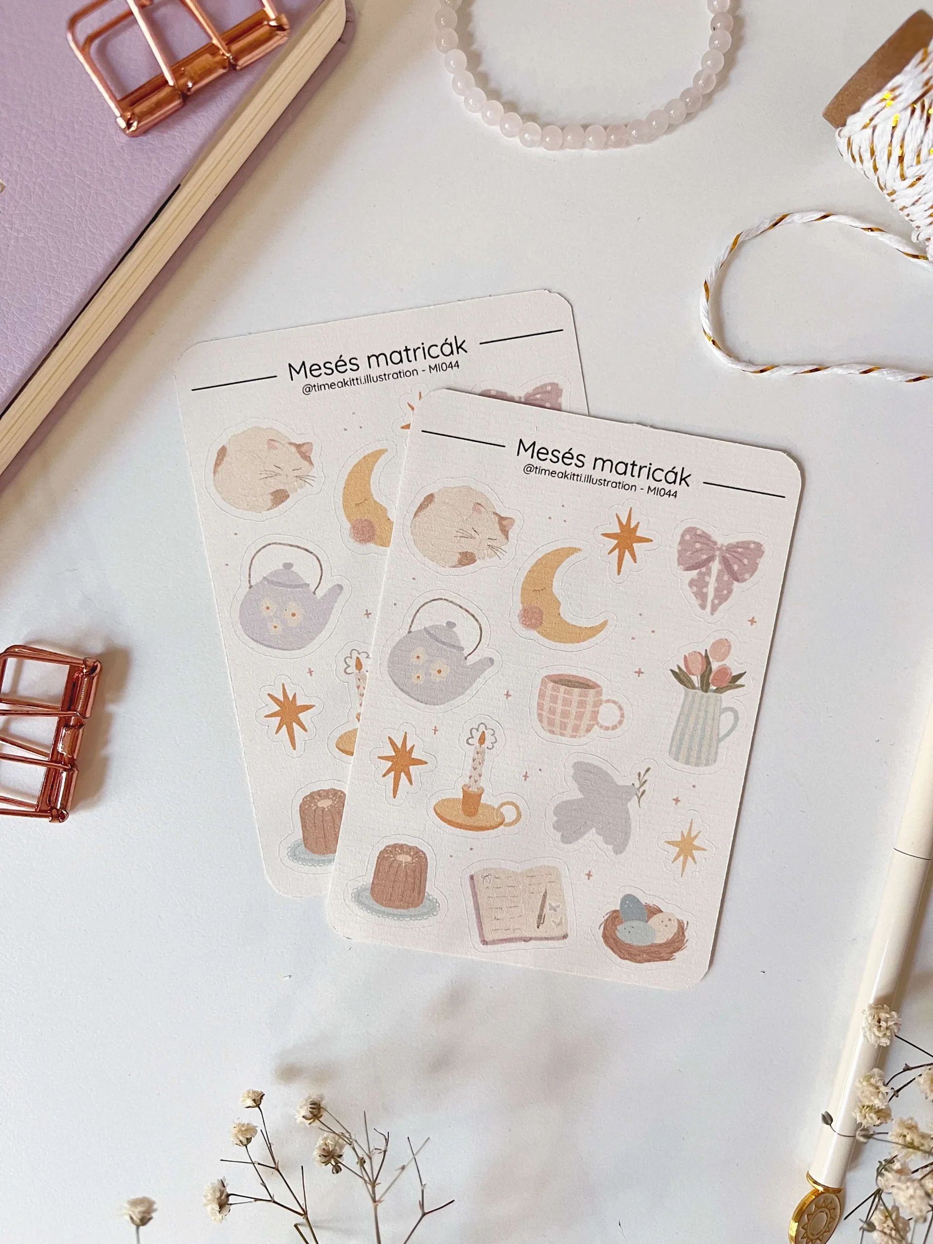 A matricaíveimet bordázott felületű, prémium hatású papírra nyomtatom és vágom a kis itthoni műhelyemben. Ezek a matricák kiválóan illenek bullet journalba, scrapbookba vagy akár képeslapok, ajándékcsomagok díszítéséhez is.