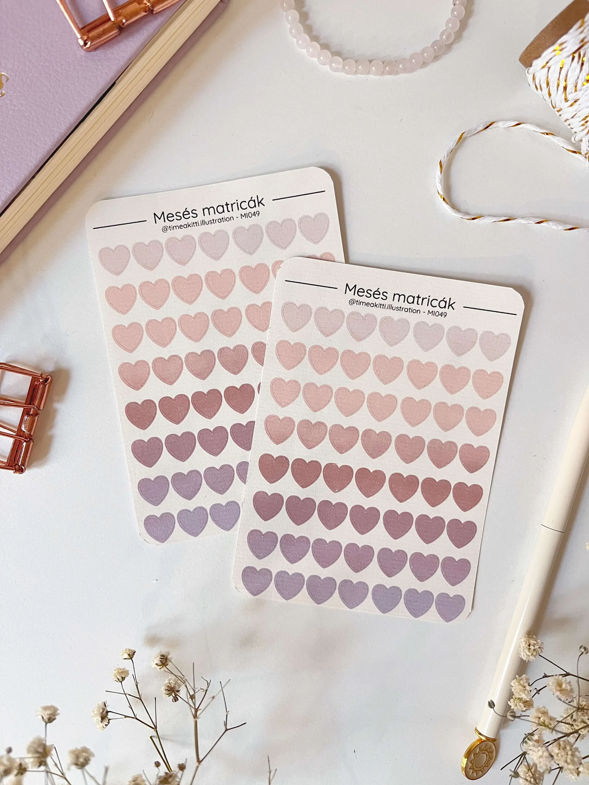 A matricaíveimet bordázott felületű, prémium hatású papírra nyomtatom és vágom a kis itthoni műhelyemben. Ezek a matricák kiválóan illenek bullet journalba, scrapbookba vagy akár képeslapok, ajándékcsomagok díszítéséhez is.